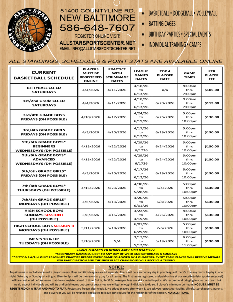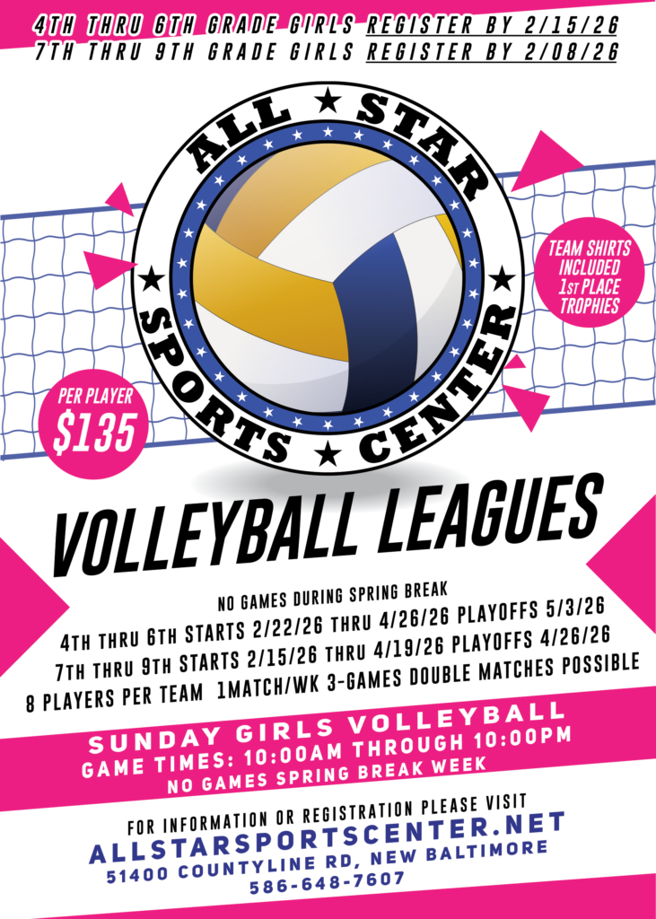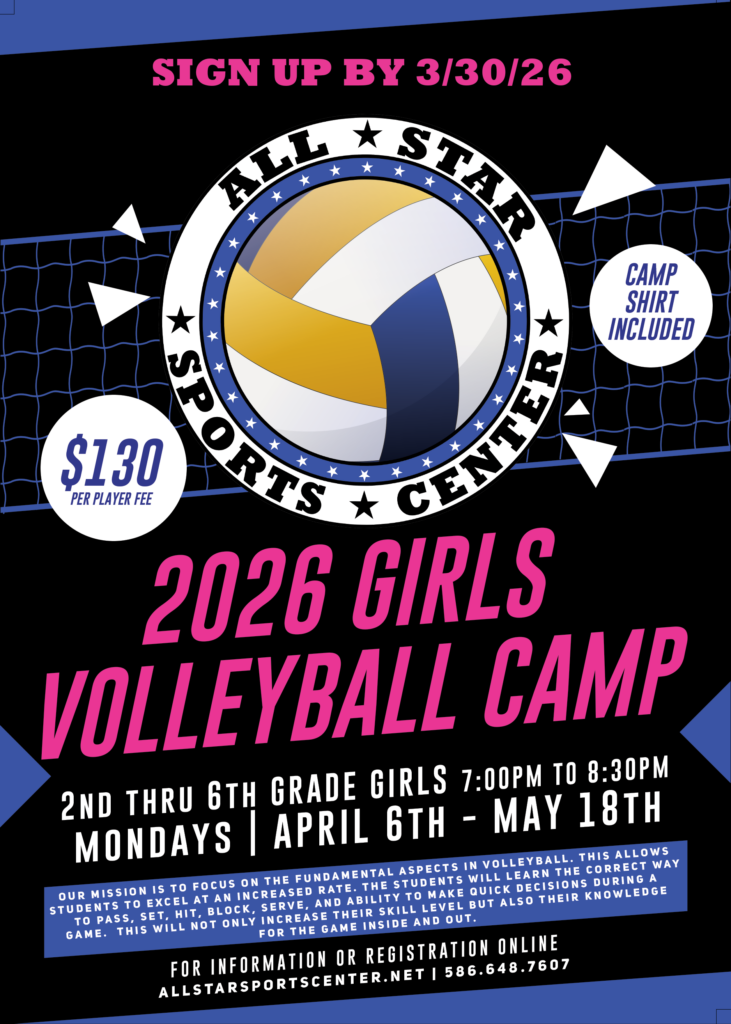 All Star Sports Center is a facility geared towards the youth and giving them a positive experience in their sports journeys. Our 20,000 sqft. facility provides the tools you will need to strengthen your athletic abilities and gain experience within your sport. We welcome athletes from ages 4 years old to men's 18+ to enjoy the facility and partake in our leagues and training.